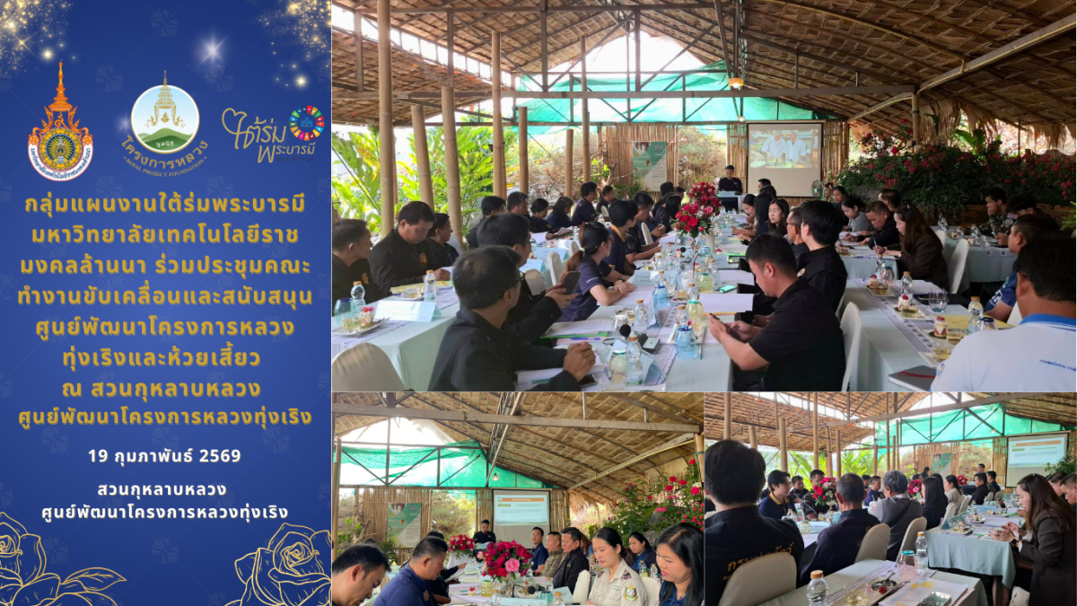 วันที่ 19 กุมภาพันธ์ 2569 ผู้ช่วยศาสตราจารย์ ดร.วรจักร์ เมืองใจ ผู้อำนวยการสถาบันถ่ายทอดเทคโนโลยีสู่ชุมชน และหัวหน้ากลุ่มแผนงานใต้ร่มพระบารมี ได้มอบหมายให้ นางสาวพิมลพรรณ เลิศบัวบานนักวิจัย และนายสามารถ สาลี วิศวกร กลุ่มแผนงานใต้ร่มพระบารมี เป็นตัวแทนมหาวิทยาลัยฯ เข้าร่วมประชุมคณะทำงานสนับสนุนศูนย์พัฒนาโครงการหลวงทุ่งเริงและห้วยเสี้ยว ณ สวนกุหลาบหลวง ศูนย์พัฒนาโครงการหลวงทุ่งเริง ตำบลบ้านปง อำเภอหางดง จังหวัดเชียงใหม่